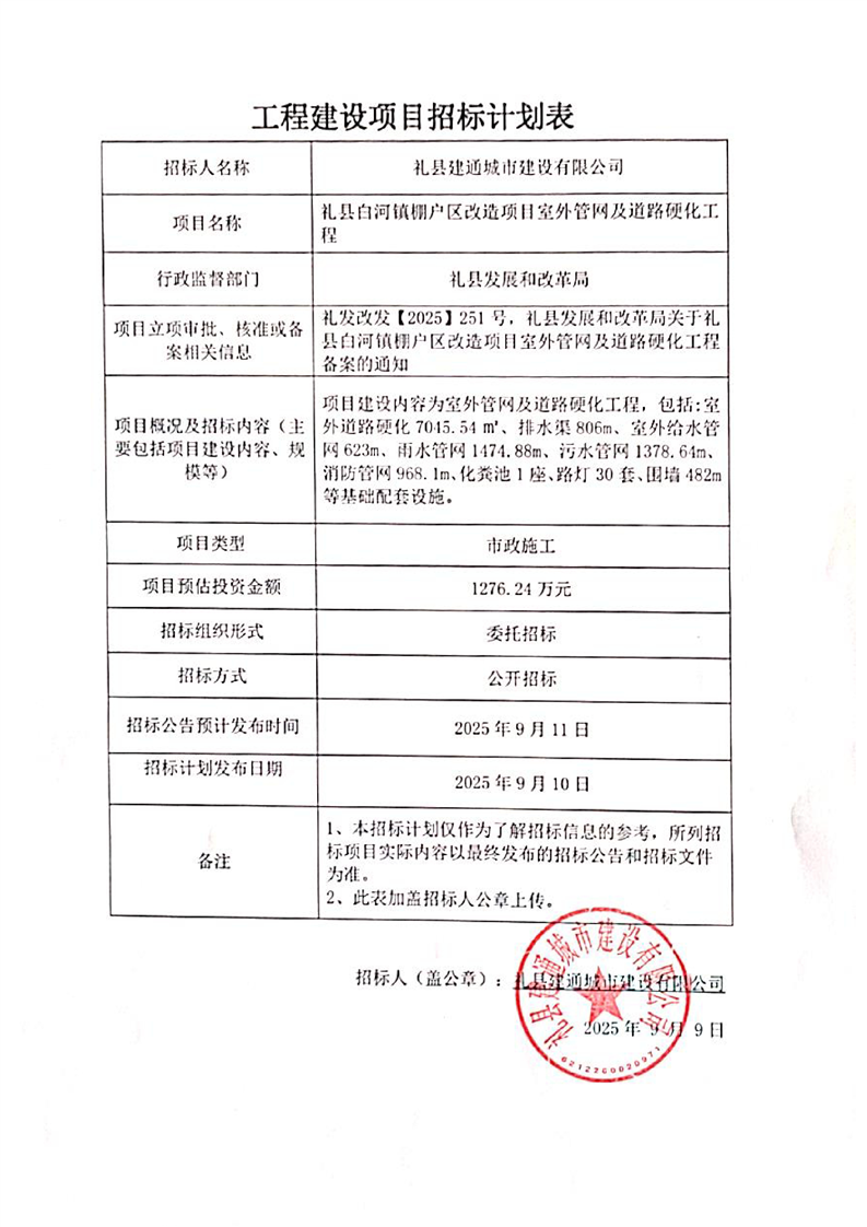 禮縣白河鎮(zhèn)棚戶(hù)區(qū)改造項(xiàng)目室外管網(wǎng)及道路硬化工程