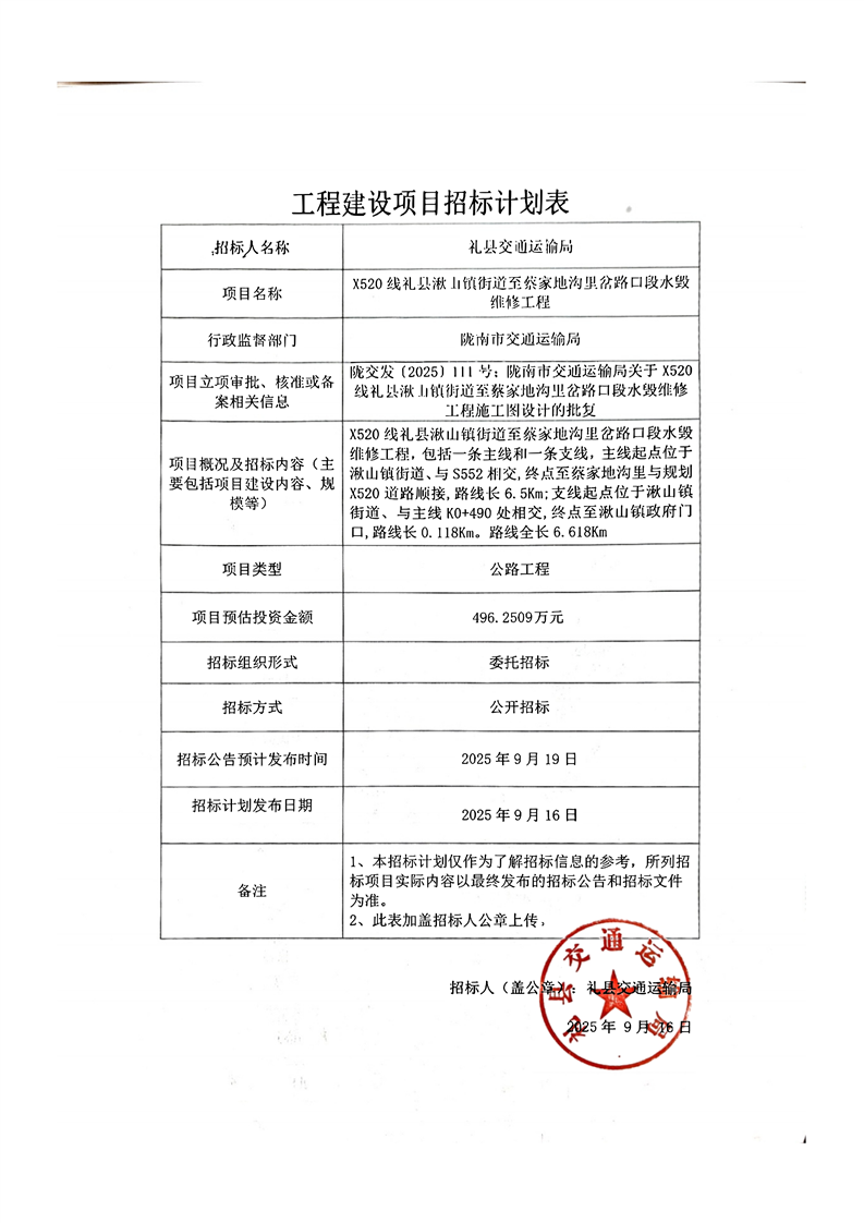 X520線禮縣湫山鎮(zhèn)街道至蔡家地溝里岔路口段水毀維修工程