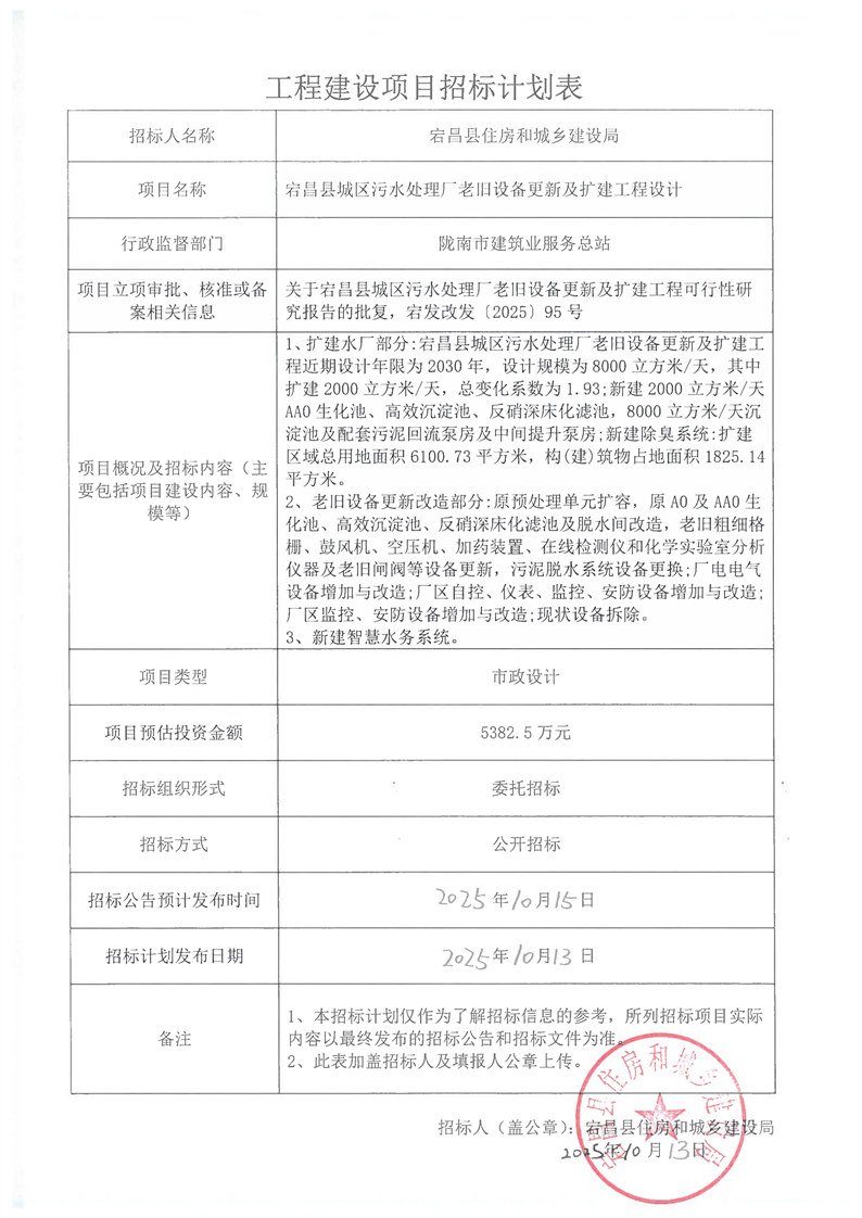 宕昌縣城區(qū)污水處理廠老舊設備更新及擴建工程設計