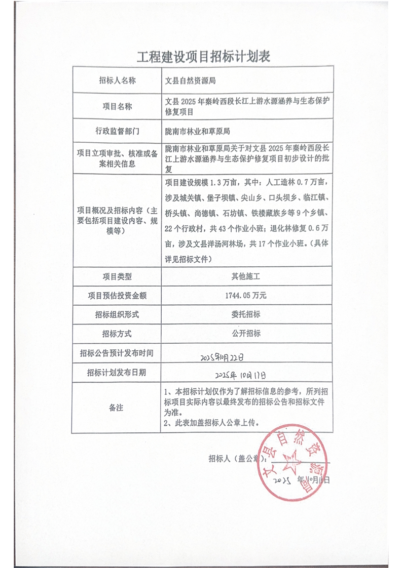 文縣2025年秦嶺西段長江上游水源涵養(yǎng)與生態(tài)保護修復項目