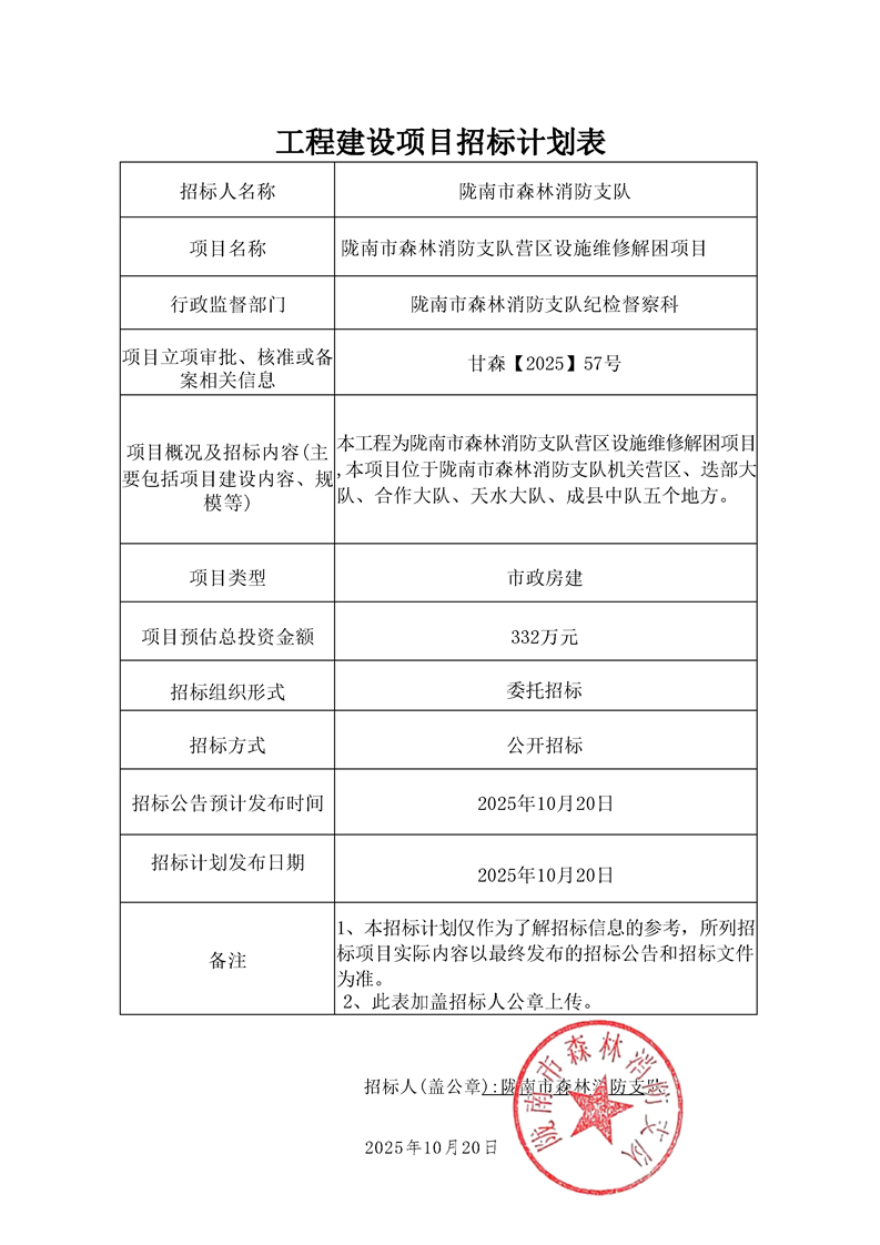 隴南市森林消防支隊(duì)營區(qū)設(shè)施維修解困項(xiàng)目