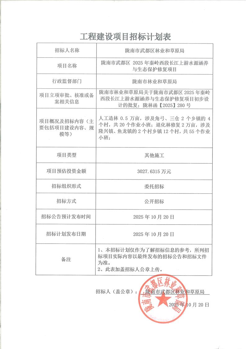 隴南市武都區(qū)2025年秦嶺西段長(zhǎng)江上游水源涵養(yǎng)與生態(tài)保護(hù)修復(fù)項(xiàng)目