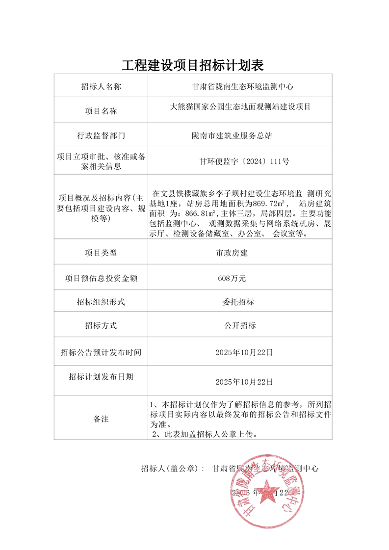 大熊貓國家公園生態(tài)地面觀測(cè)站建設(shè)項(xiàng)目