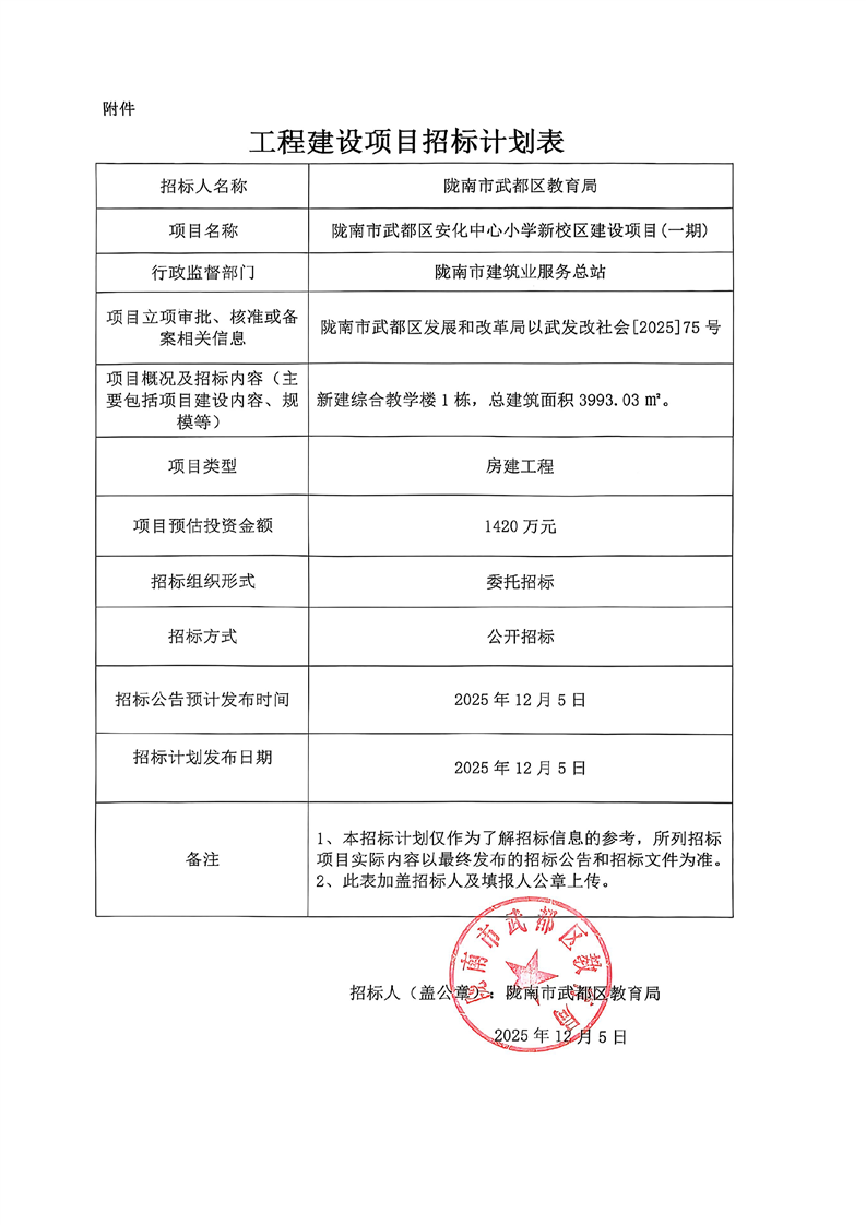 隴南市武都區(qū)安化中心小學(xué)新校區(qū)建設(shè)項(xiàng)目(一期)