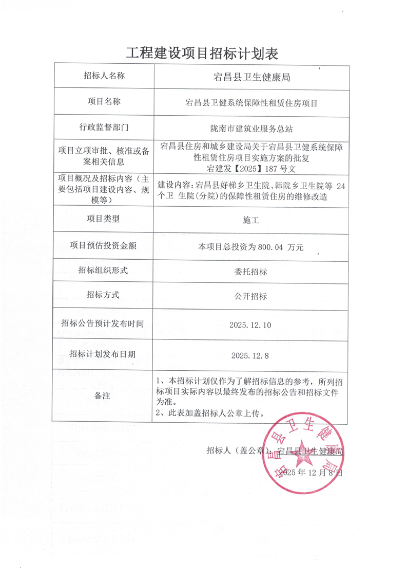 宕昌縣衛(wèi)健系統(tǒng)保障性租賃住房項目