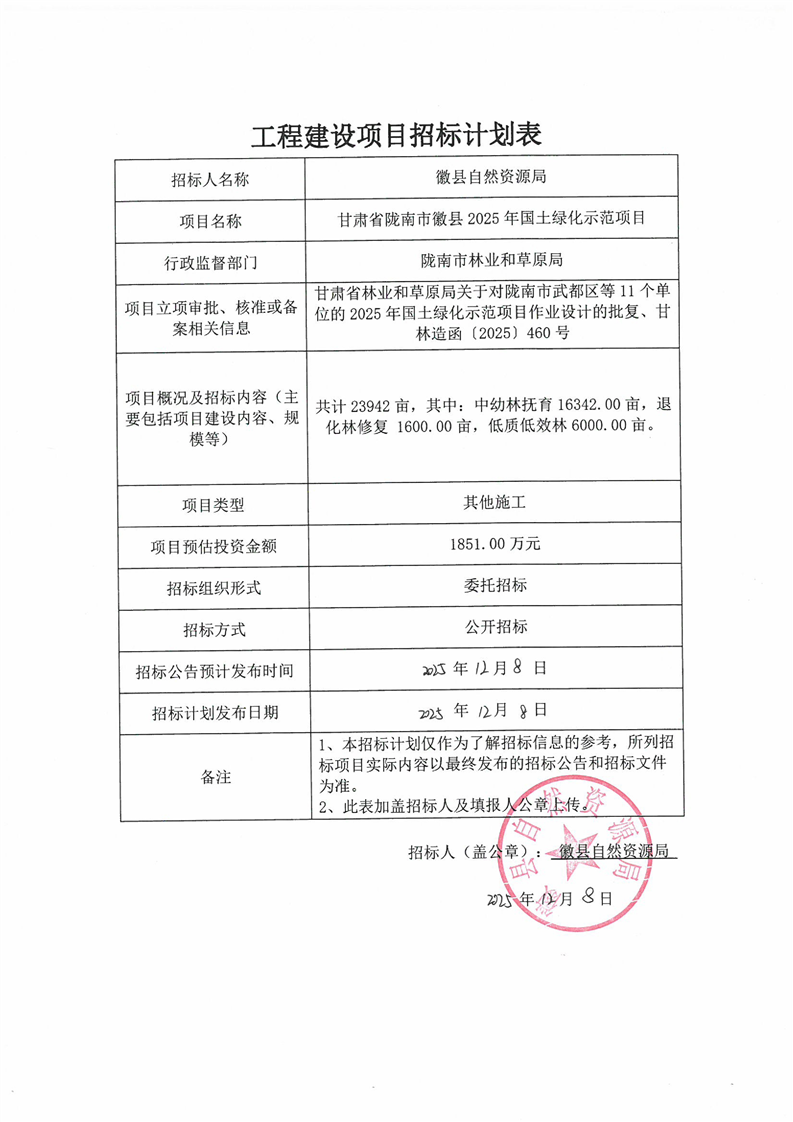 甘肅省隴南市徽縣2025年國土綠化示范項(xiàng)目